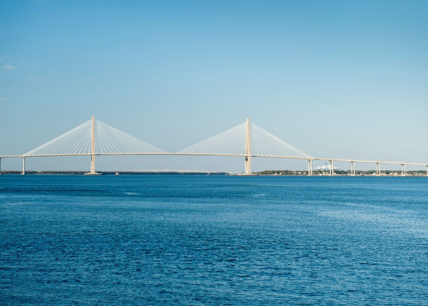 As you enjoy the view of the harbor, you can see the Arthur Ravenel Jr. Bridge and the Cooper River Bridge.