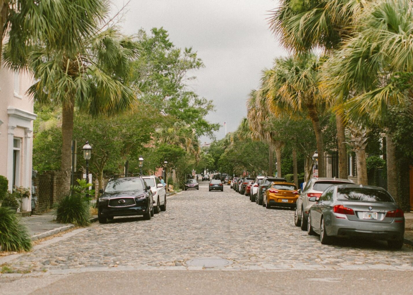 King Street is one of the major streets that goes through Charleston. Along the street there are palm trees, light posts, and all kinds of historical buildings and churches.