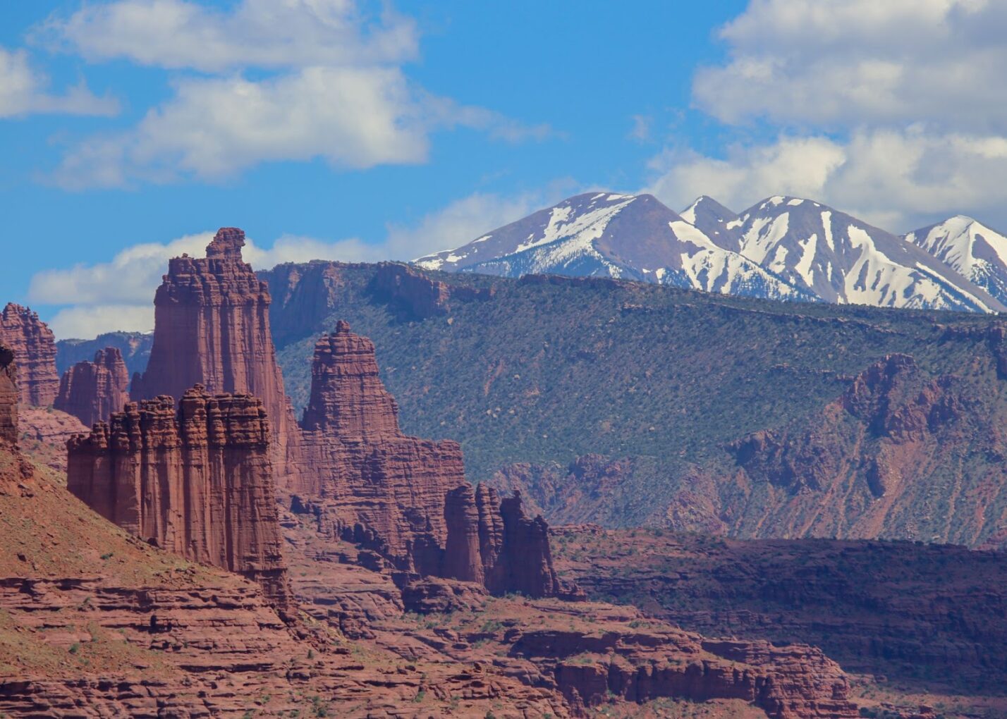 The Fisher’s Tower Viewpoint is at mile marker 24.7. At the viewpoint not only will you see the Fisher’s Tower but in the backdrop are the snow capped La Sal Mountains.