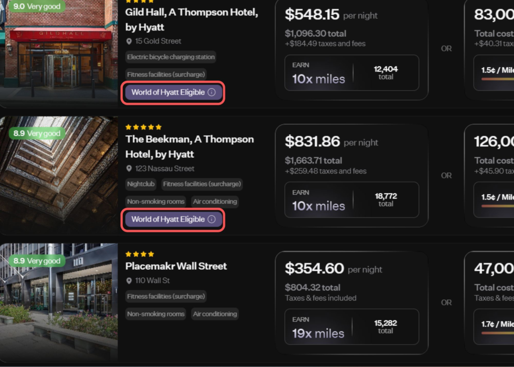Recently, Rove Miles launched “Loyalty Eligible Hotel Bookings” which means that you still earn elite nights and points when booking rooms with Hyatt, Marriott, IHG, Hilton, Best Western, Wyndham, Accor, and Choice Hotel brands while also earning Rove Miles. The stays that offer points and elite nights will be marked like what is in the screenshot below.